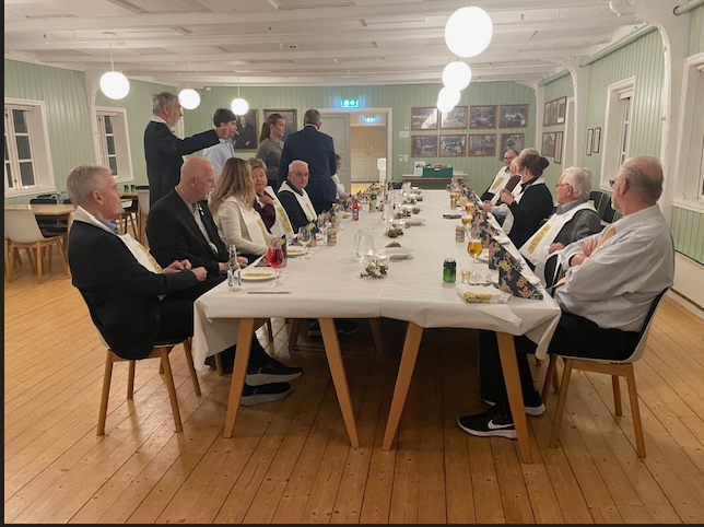 Klar for den årlige Lutefiskmiddagen som smakte fortreffelig. Asbjørn ønsket velkommen. Tor holdt tale til Lutefiskens ære, tradisjonen tro. John Ivar takket for maten og spesiell takk til arrangementskomiteen.